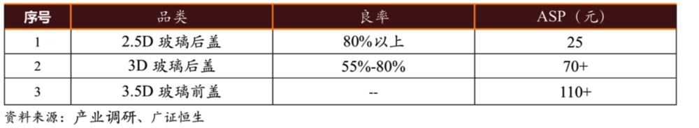 从去年下半年开始,2.5D、3D 玻璃开始逐渐走量, 《2020 年中国 3D 玻璃行业市场前景及投资研究报告》显示,2019 年中国 3D 玻璃市场规模达到 156 亿元,随着 3D 玻璃工艺技术的逐步成熟,产品良率不断提升,成本快速下降,带动 3D 玻璃应用的快速增长,推动着市场规模进一步增长,预计 2025 年市场规模近450亿元,同时,ASP 有望进一步提升。