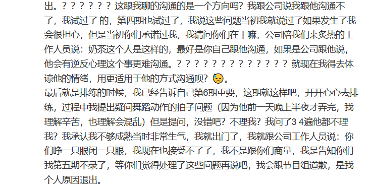 在微博里,赵品霖发长文复原了事件经过。据他描述,他与Black Ace团员私下交流不多,比赛时零交流。发生问题后,他曾向公司求助,但公司却“睁一只眼闭一只眼”。