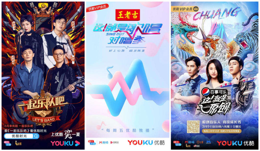 2019年,优酷开始在题材上全面“追赶”。他们用《以团之名》“对打”《青春有你》,用《这就是原创!》“对打”《我是唱作人》,用《一起乐队吧》“接档”《乐队的夏天》,用《演技派》“对打”《演员请就位》。