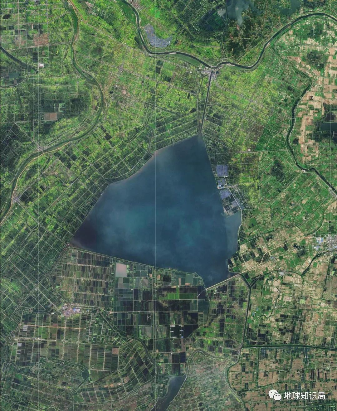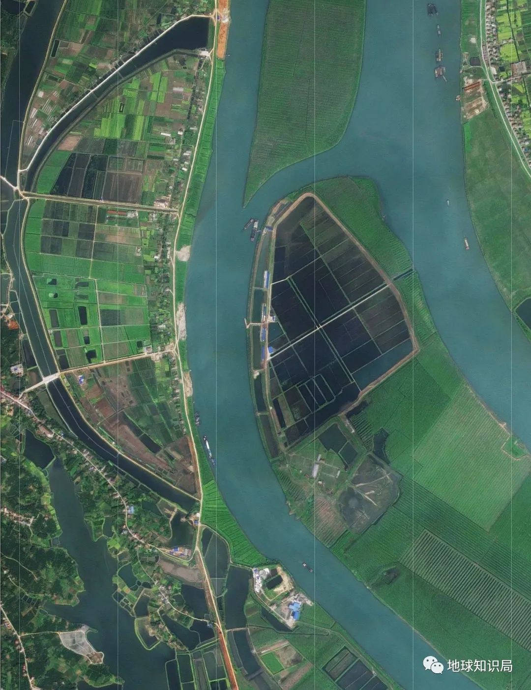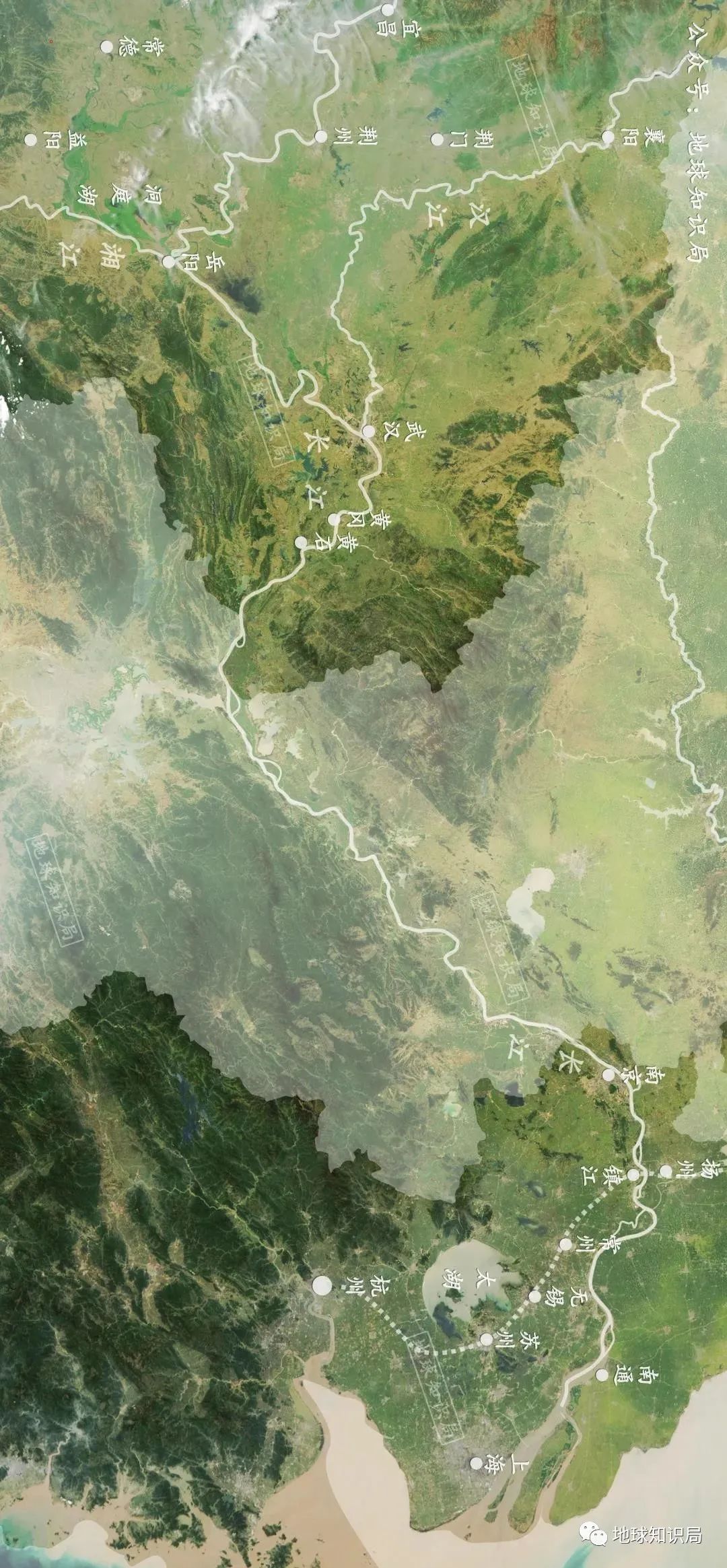 明末-清末,江南地区的城市化人口越来越多,更多的土地用于生产经济作物,那么就要找到新的粮食富余产区,两湖(湖广)地区成为最佳选择,但这也意味着对这一区域的大量水域围湖造田(底图来自:NASA)▼