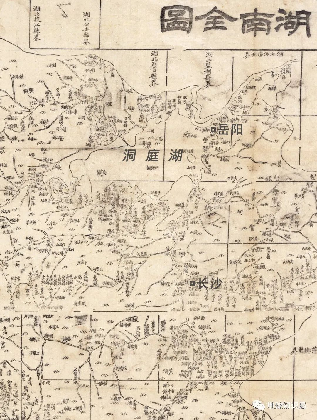 清朝的湖南全图中,虽然洞庭湖周边已经在大规模开发,但大湖规模还是比今天要大很多的▼