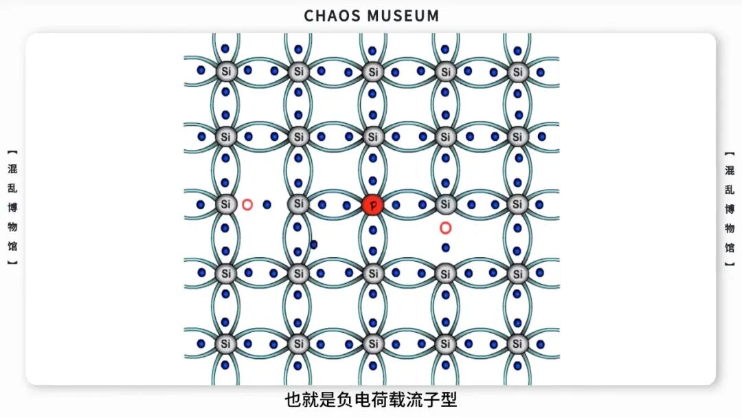 磷外层有五个价电子,多一个没有配对的自由电子,因此可以导电。其中的自由电子向正极移动,形成电子电流。像这样多出自由移动电子的晶体硅被称为 N型半导体(negative 为负)——也就是负电荷载流子型。