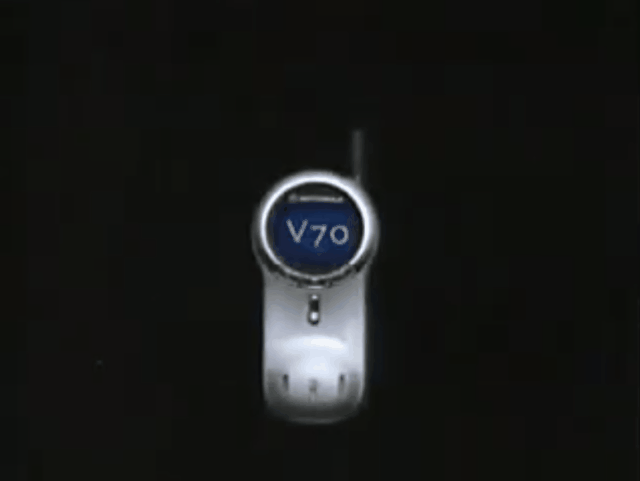 说到旋转屏,就不得不提到摩托罗拉在 2002 年发布的 Motorola V70,即使它并没有旋转屏幕。推出了第一台手机和第一台折叠手机的摩托罗拉,自然是探索手机形态的先行者。当时的手机形态还是直板或者翻盖设计为主,摩托罗拉用自己满点的工业设计能力,做出了史上首款旋盖手机 V70。