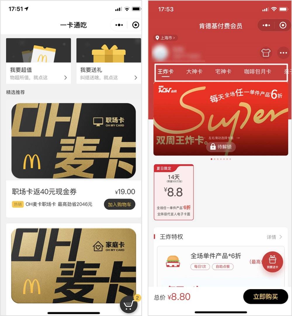 对于那些不想每天蹲守 App 抢券的用户,肯德基和麦当劳还推出了很多的付费会员卡。