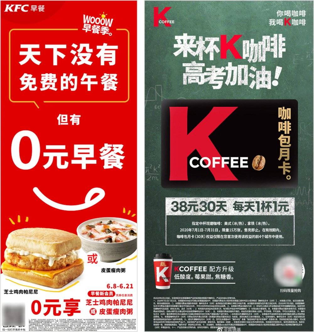 肯德基也不甘示弱,紧跟着也推出了“ WOOOW 早餐季”,早餐新会员可以 0 元购买汉堡或粥。最骚的是,活动时间刚好比麦当劳多一周。(麦当劳:我觉得你在针对我)