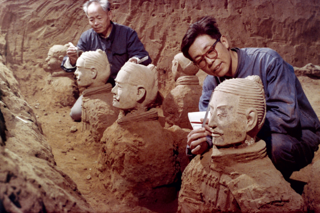 西格玛图片社的摄影师丹尼尔·达罗尔(Daniele Darolle)获得了特别的许可,得以进入考古人员工作的现场进行拍摄,右侧为著名考古学家袁仲一。