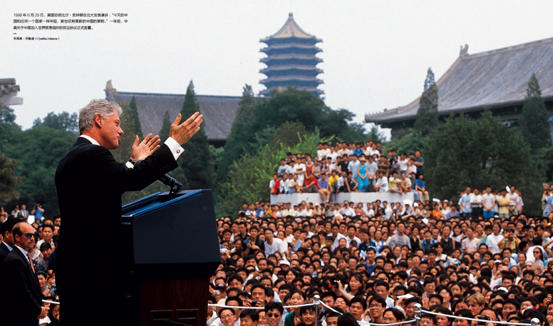 1998年6月29日,美国总统比尔·克林顿在北大发表演讲:“今天的中国和任何一个国家一样年轻,新世纪将是新的中国的黎明。”