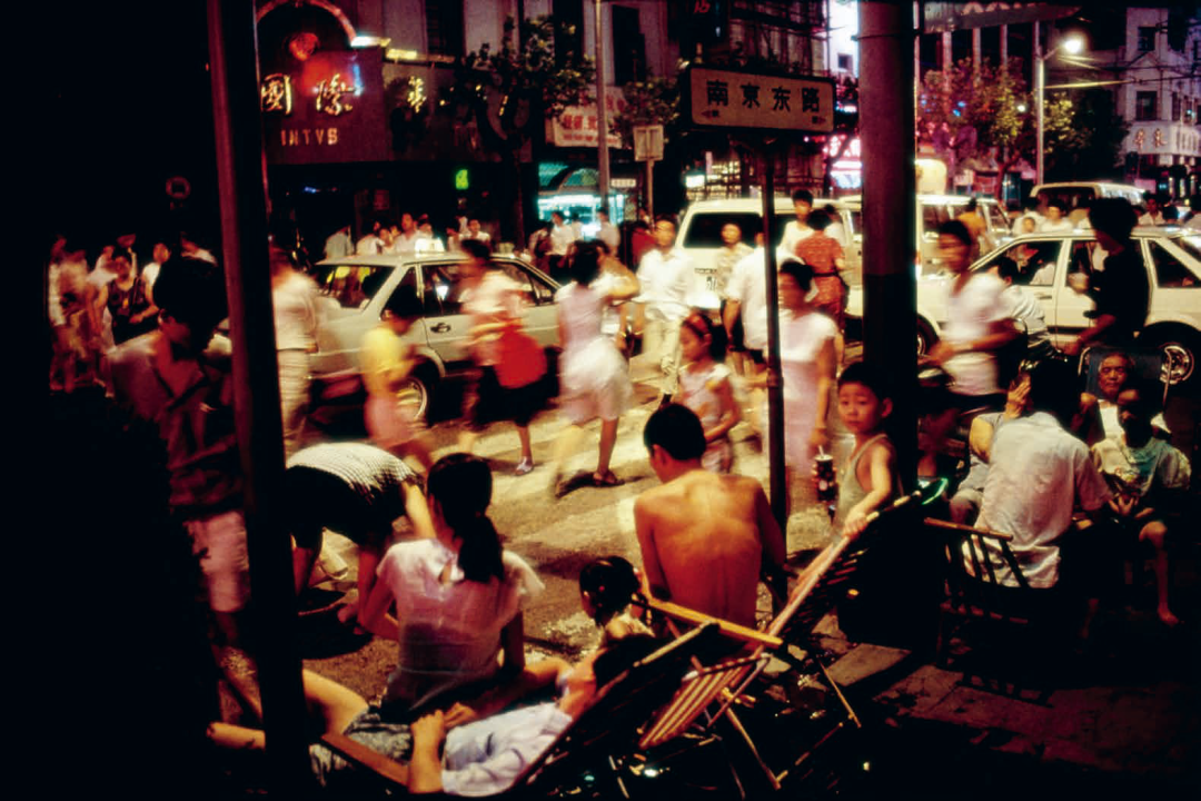 1995年8月,潮湿闷热的夏夜,南京路上聚集了诸多前来纳凉的市民。在今天看来,这种沪语中称为“乘风凉”的举动,是空调尚未普及下的消暑方式。