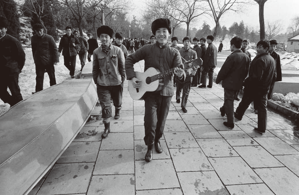 1979年3月,在北京街头弹奏吉他的少年。不久之后,他们这一代人中间将诞生出中国第一代摇滚歌手。