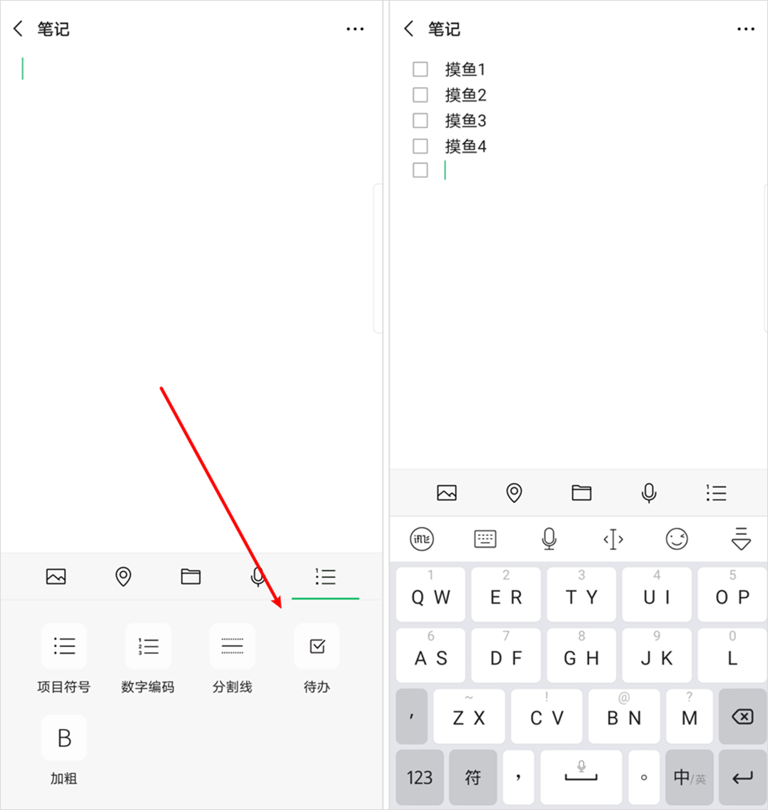 微信的笔记功能非常强大,可以插入图片、语音、位置等内容,右下角的“待办”功能还能用来写 To Do List,我每天上班之前都会在微信笔记里先写好自己的 To Do List。