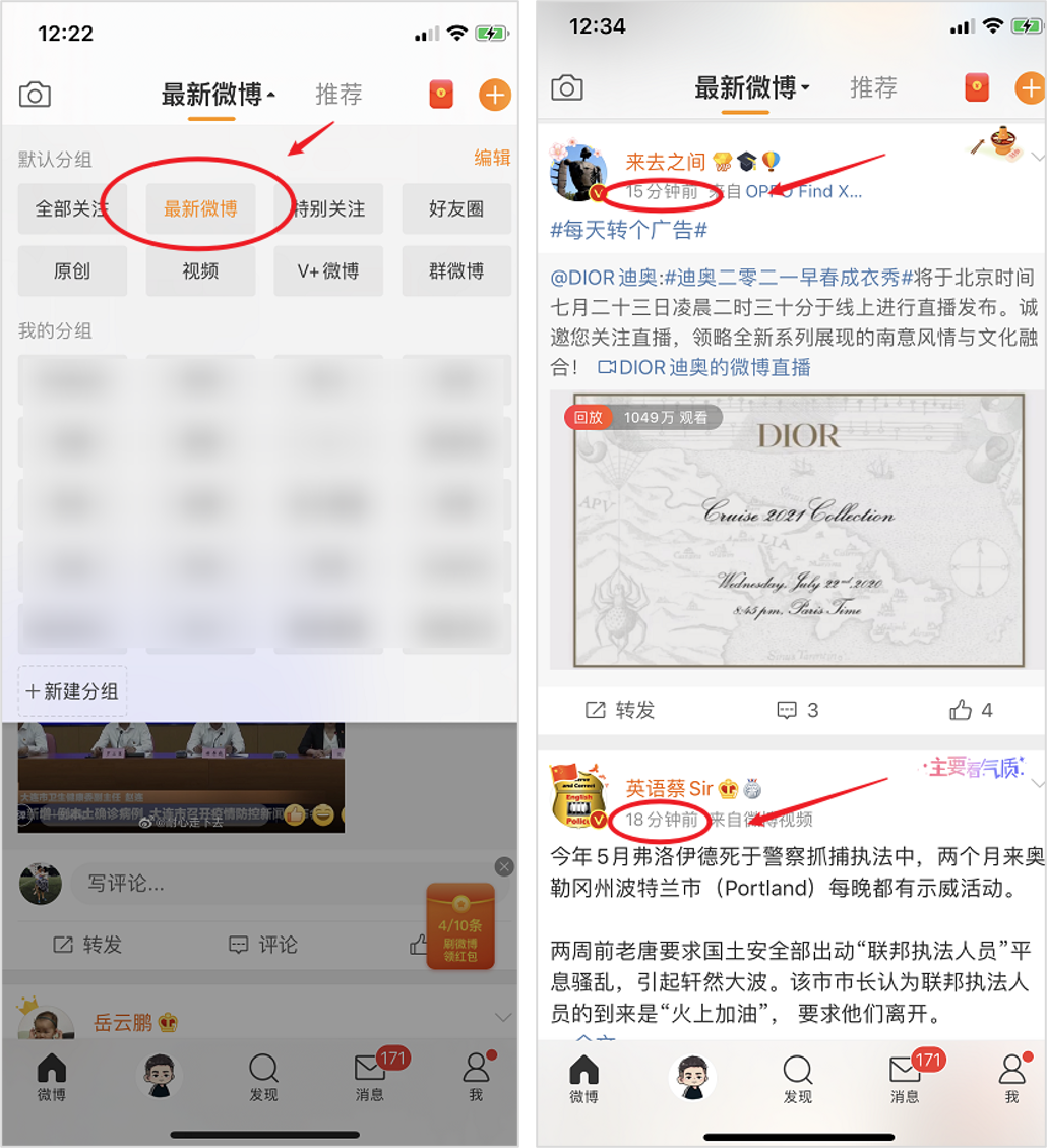 后来微博没办法,新加了“最新微博”的选项,用户选择了之后基本上就能恢复正常了。