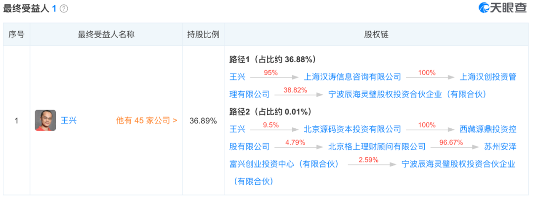 王兴的投资版图不仅仅局限于个人,他还通过“上海汉创投资管理有限公司”和源码资本两条路径,成为辰海资本一家投资主体的最终受益人。