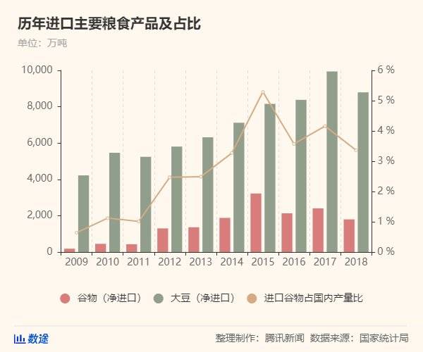 我国是产粮大国,同时也是粮食进口大国,自2010年起更稳居全球农产品进口量第一。其中原因之一是我国人口基数的庞大和消费的升级。