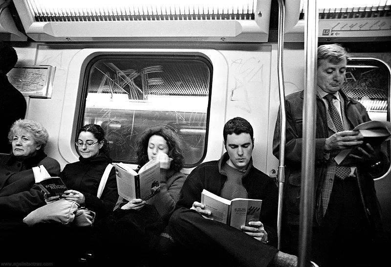在人潮拥挤的通勤高峰期,这些沉浸在自我世界之中、宛如被按下了静音键的乘客们,让伦敦地铁蒙上了一层古典主义的柔光。