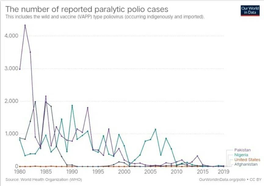 1988年成立的GPEI获得了广泛支持 / Our World in Data