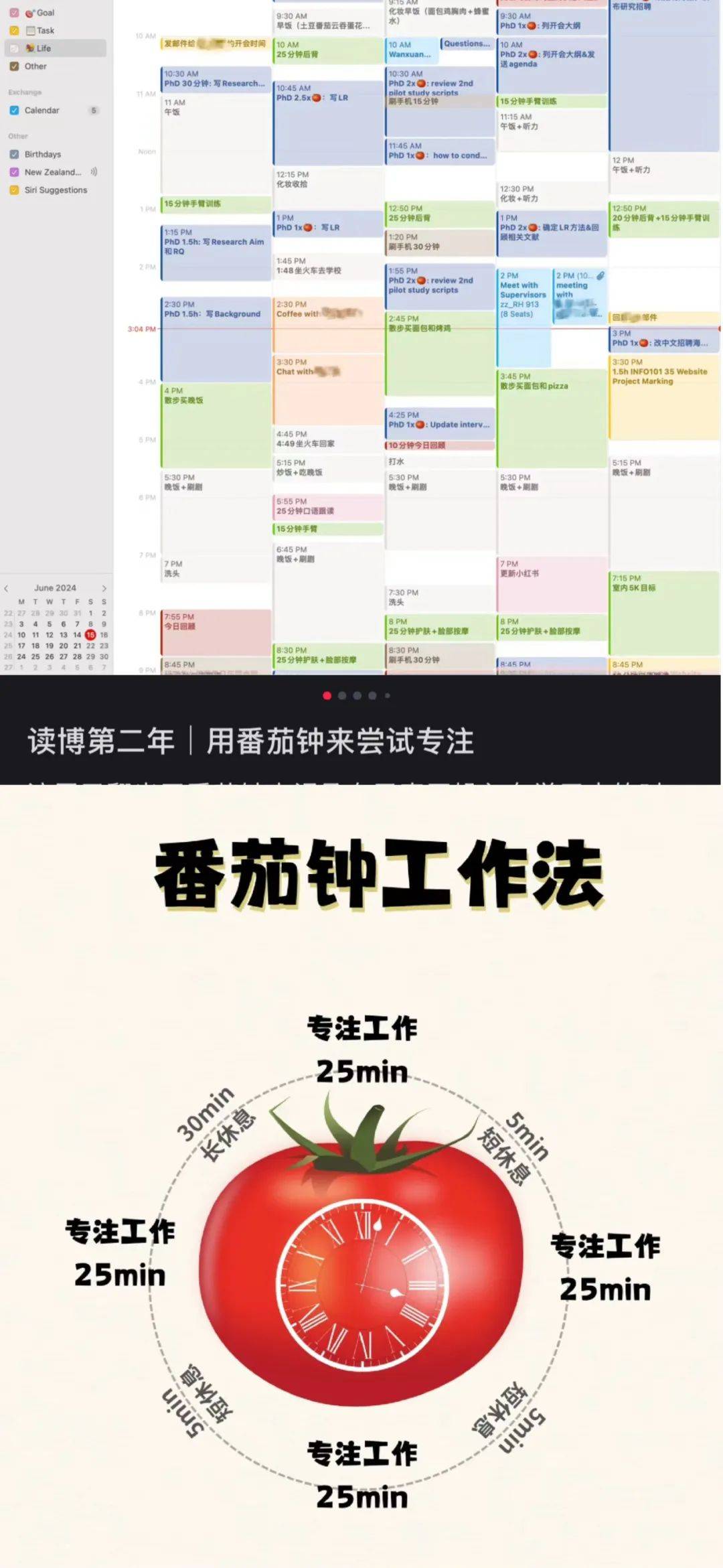 小红书上正在读博的网友分享关于番茄钟法的体验心得