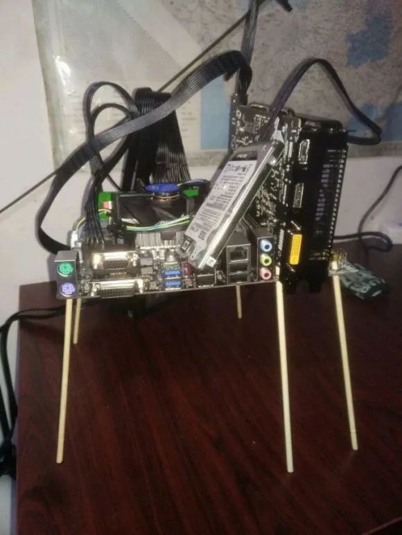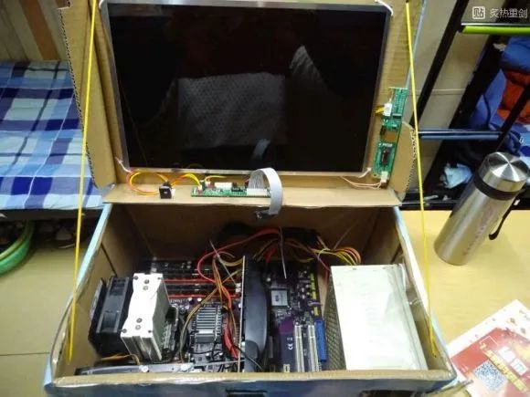 而对于那些住在学校宿舍的大学生们来说,电脑机不机箱的已经无所谓了,他们把所有的主机配件都钉在桌子上,不仅节省空间,还防盗。