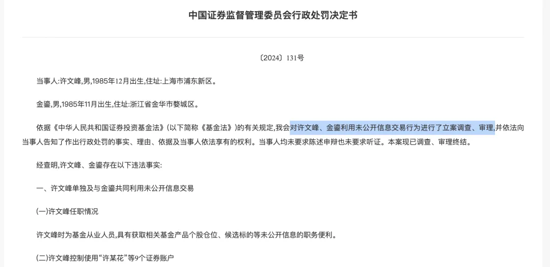 经查明,许文峰时为基金从业人员,具有获取相关基金产品个股仓位、候选标的等未公开信息的职务便利。