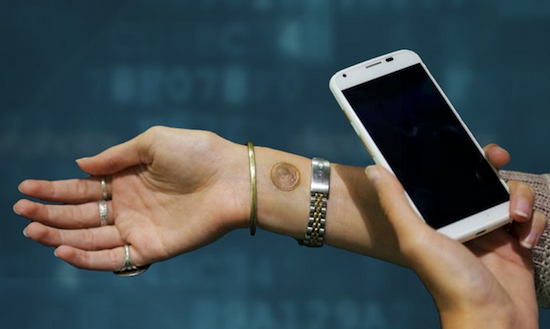 #比MC10更着急的#硅谷初创公司VivaLnk最近推出了全球第一款商品化的“数码纹身”。这种数码纹身只有硬币大小、薄如纸片,可以黏在手腕部位(其实感觉叫“贴片”比纹身更合适,另外贴在什么部位随便你啦你懂的),通过和手机相互碰触来解锁手机。