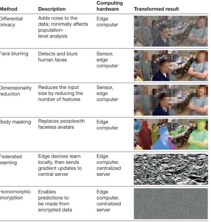 就单说摄像头数据,可以采用的保护隐私的方法也有很多,比如主动添加噪音、模糊面部、遮蔽身体、在终端学习(只上传梯度数据给中央服务器)等等:
