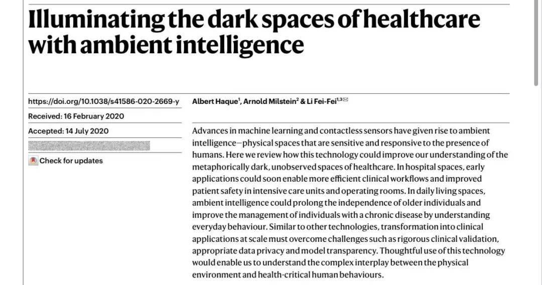 机器学习和非接触式传感技术的进步,促进了环境智能的兴起。而我们都知道,机器学习,特别是基于机器学习的计算机视觉,正是李飞飞团队的老本行。