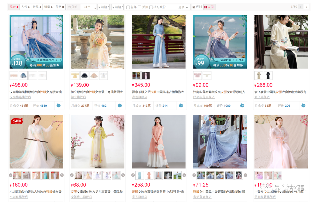 电商平台上所销售的各类汉服