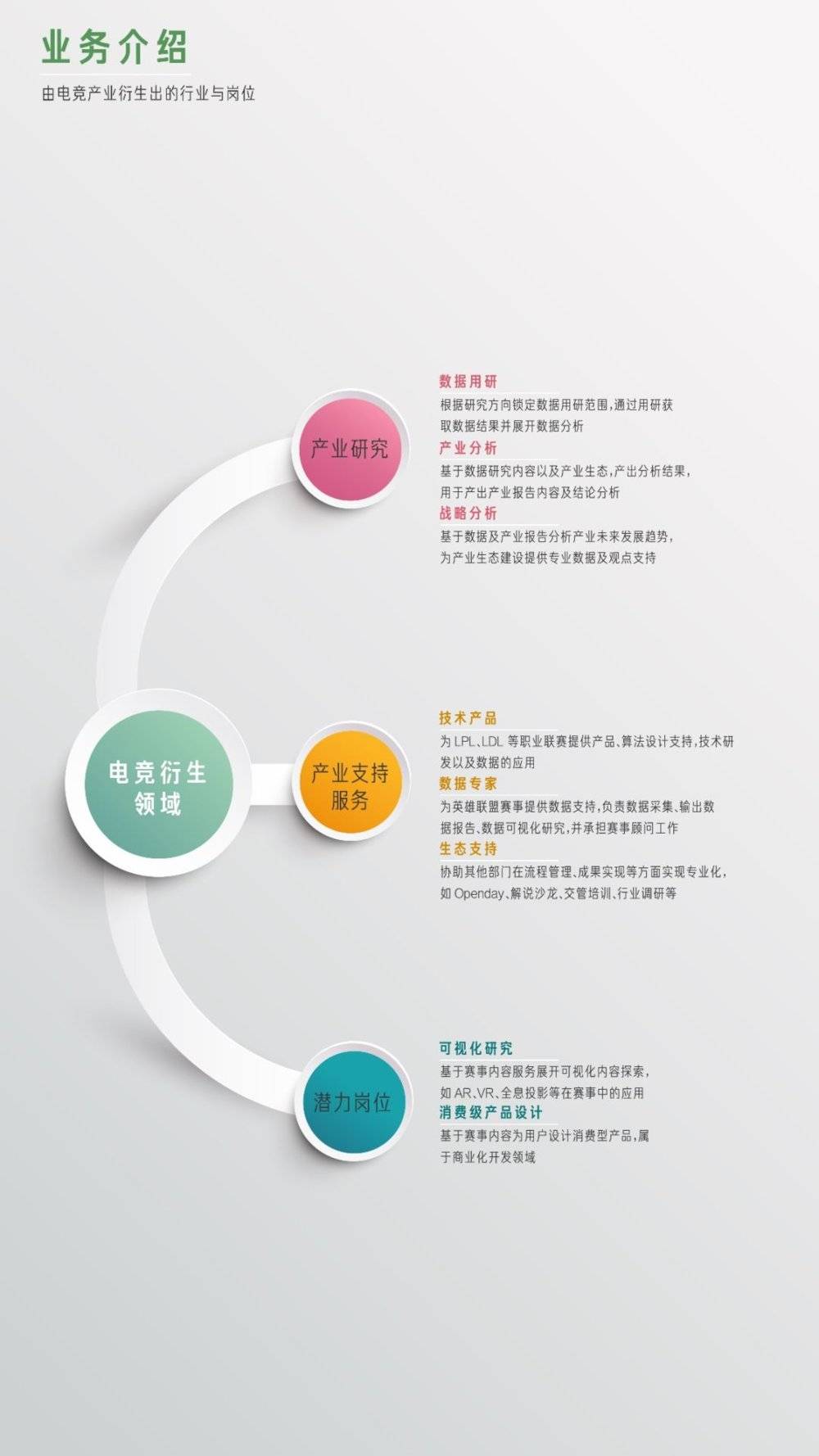 如果说体育的部分要靠职业电竞选手来完成,那么“科技+文化”的部分则需要更多服务于电竞的相关工种来完成。