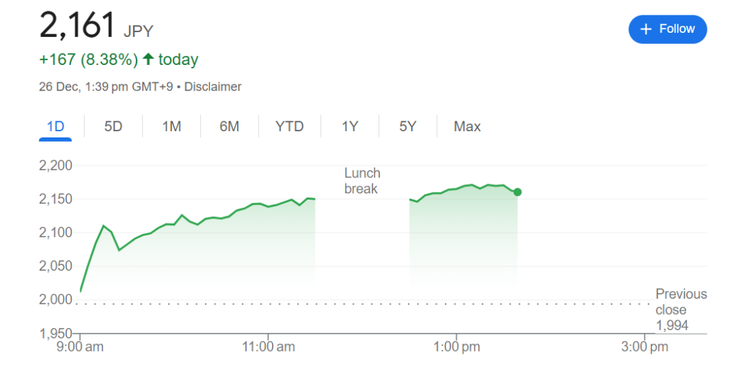 此消息一出,日本零售及旅游相关股票周四立即上涨。截至发稿,日本百货商店运营商J.Front Retailing Co.大涨8.38%,领涨日经225指数。伊势丹三越控股有限公司和高岛屋株式会社也分别上涨6.98%和3.69%,东京迪士尼度假区运营商东方乐园上涨2.5%。