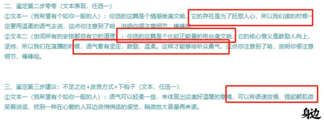 “这位学员刚开始也是很感兴趣,通过别人介绍了解了咱们的‘有声教育计划’。只是他的声音条件并不好,我最开始是劝退的,但他用热爱的态度坚持学习、认真训练,经过我们基础课培训后,第一个月就成功接到商单。现在他在‘有声’上的收入已经超过了主业,时薪达到了250元。他正在进行全国旅行,路上的一切花销都靠‘有声’挣回来了。大家的天资禀赋都比这位同学优秀,难道还不如他吗?”