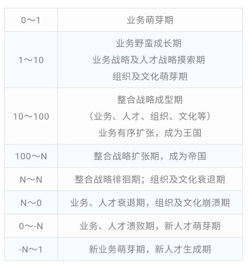到了10~100的整合战略成型期,业务有序扩张,就需要解决内部造血机制,实现人才从基层到高层的打通,也是建立真高管的关键时期。