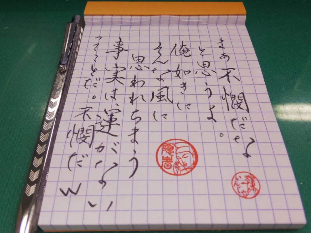 一位爱好硬笔书法的日本Twitter用户“月影に紛れる隠者”上传的两份截然不同的作品。 © @wiggin_YHWH / Twitter