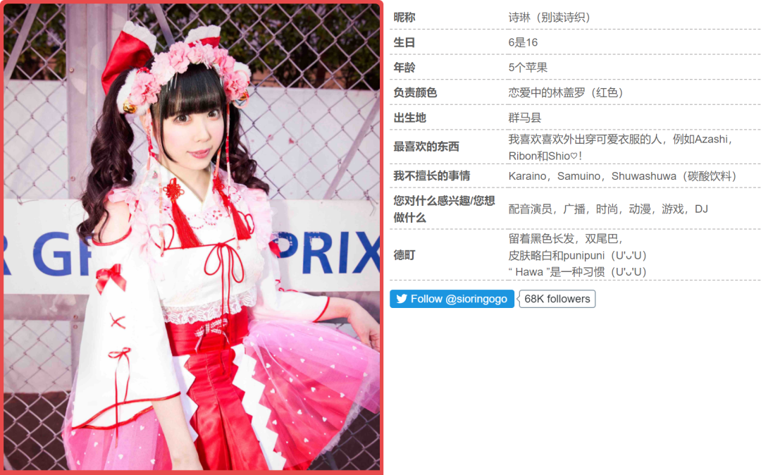 该艺人所在女子偶像团体官网上的个人简介,经谷歌翻译功能翻译为中文。 © BAND JA NAIMON!