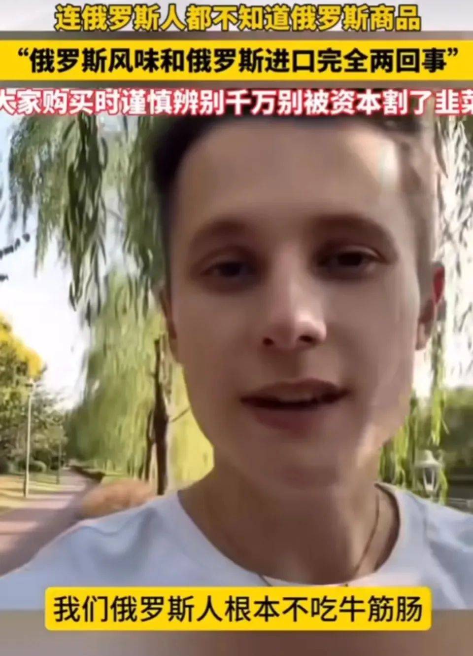 一位来上海留学的俄罗斯姑娘,在视频里一再提醒大家:这个不是俄罗斯的,那个也不是俄罗斯的。说着说着就被店员给赶出去了。