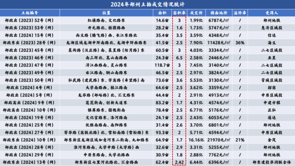 于是我们看到,在郑州2024年成交的土地中开始有了一个非常明显的信号: