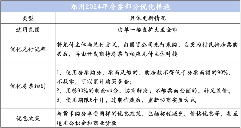 于是在最近2024年10月底的新政上,针对房票的适用范围、兑付流程以及房票细则等都进行了优化。