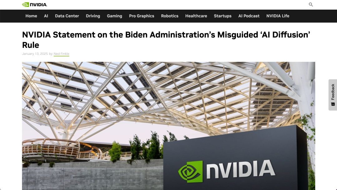 “最终规则”引发了英伟达、Oracle(甲骨文)等美国科技企业,以及美国半导体行业协会的强烈反对。美国产业界认为,“最终规则”在拜登政府卸任前强行通关,它在公布之前不仅没有征求美国科技企业的意见,而且无助于美国保持自身在人工智能领域的领导地位。