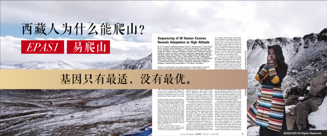 能爬山就好吗?如果西藏朋友来到北京会怎么样?醉氧。我们到了高原容易怎么样?缺氧。所以能爬山的基因是好还是不好,要看你在什么环境。我们筛出的这个基因叫EPAS1,我给它起了个中文名叫易爬山基因,好记吧?藏族中大概87%都有这个基因,我们汉族中就10%,这就是典型的演化。