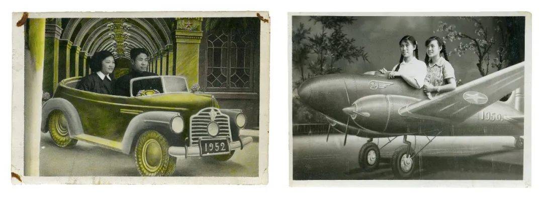 五六十年代,人们去照相馆照相常会坐在小汽车、飞机的模型里,想象未来我坐上汽车的时候速度会多么快、多么幸福、多么有尊严。照相馆为此专门造了汽车、飞机、轮船、军舰等模型和布景,这是人们对未来生活的期许和向往。