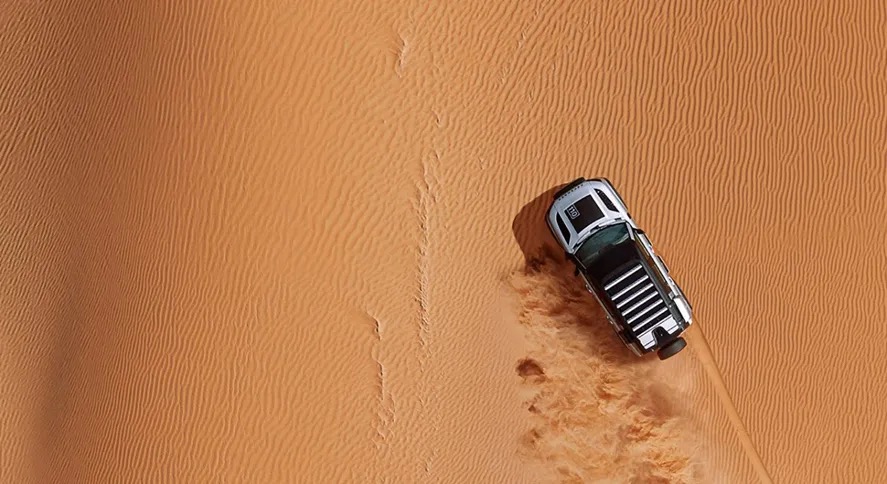 在沙漠测试环节中,纯电揽胜上全新搭载的多电机智能扭矩管理系统,帮助其一口气开上了沙迦阿尔巴代尔沙漠中、代号为“大红山”、高91.44米的沙丘。充分展现了电动化之后,电机扭矩反应时间进一步提升所带来的出色越野牵引力控制表现。