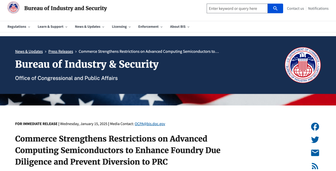 新规将会立即生效,并在15天后开始具体执行。BIS称,这些规则巩固了此前2022年10月7日、2023年10月17日和2024年12月2日出台的管制措施。