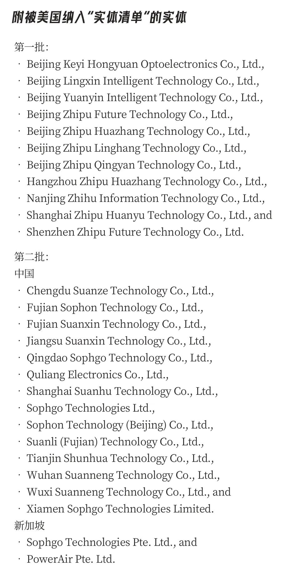 此外,BIS将中国和新加坡的27个AI和芯片公司添加至实体名单中,理由是这些公司将会增强中国先进芯片的生产自主性,因而对美国及盟国的国家安全构成威胁。中国大模型独角兽智谱科技及旗下公司均位于其中,智谱科技也成为中国第一个被列入实体清单的大模型公司。如此也意味着,这些公司未来将很难获得美国公司的技术和产品出口。