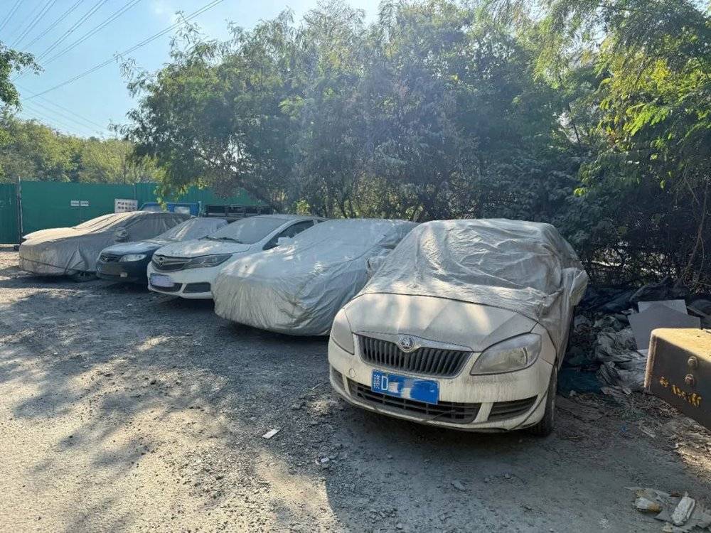 还有一些车辆轮胎干瘪,车侧都是划痕,车牌被卸掉了,甚至有一些连车轮都不见了踪影,彻底成了无名的“废弃车辆”。