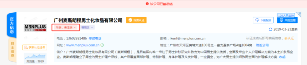 不过,男性主义很快便沉寂了下去,除了在2014年传出韩后入股的新闻,很少再被行业提及。根据天眼查上的信息,如今该品牌的母公司——广州麦斯朗程男士化妆品有限公司已被吊销营业资格,男性主义品牌也成为了历史。