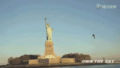 2015年,大卫·梅曼利用飞行背包飞越美国自由女神像 | 图源:Jetpack公司