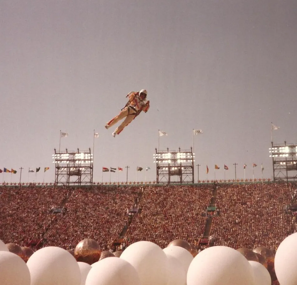 尼尔森·泰勒出现在1984年洛杉矶奥运会开幕式会场上空 | 图源:Jetpack公司