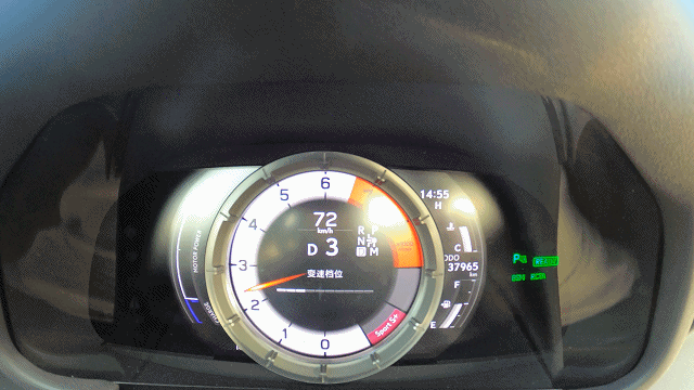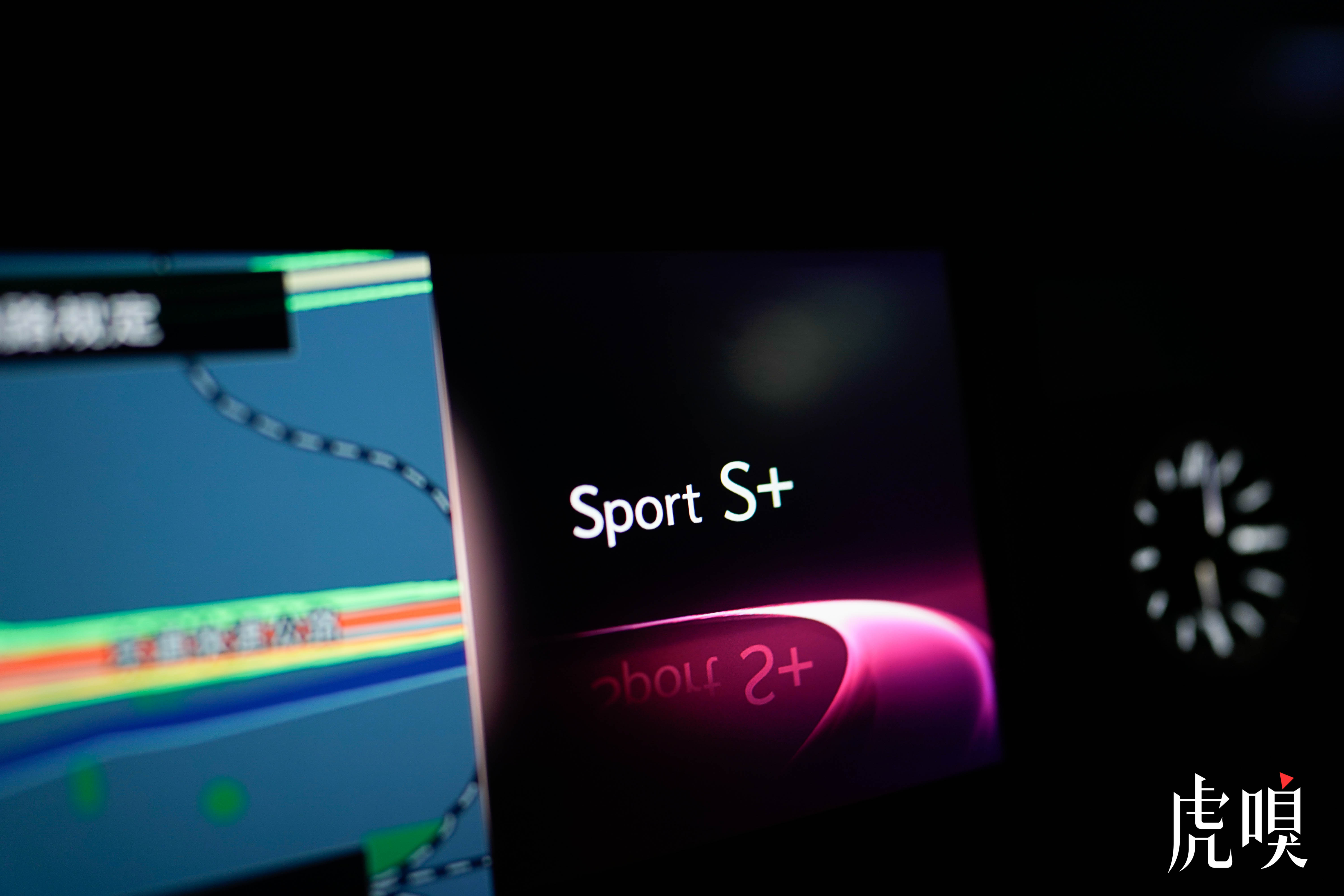 拧动仪表右侧的“牛角”旋钮,进入 Sport 乃至 Sport+ 模式。转速表由蓝色转为醒目的白+红,“随着准备着”变成了“严阵以待”:油门踏板的一点点动作,都会反映在转速、轮速、车速中的一个或几个。没有迟滞的自吸引擎,加上电机随叫随到的扭矩,这种“不那么依赖降档”型的即时动力,在涡轮泛滥的今天已经稀少而老成——如同这个很有十年前风格的 Sport 模式 UI。
