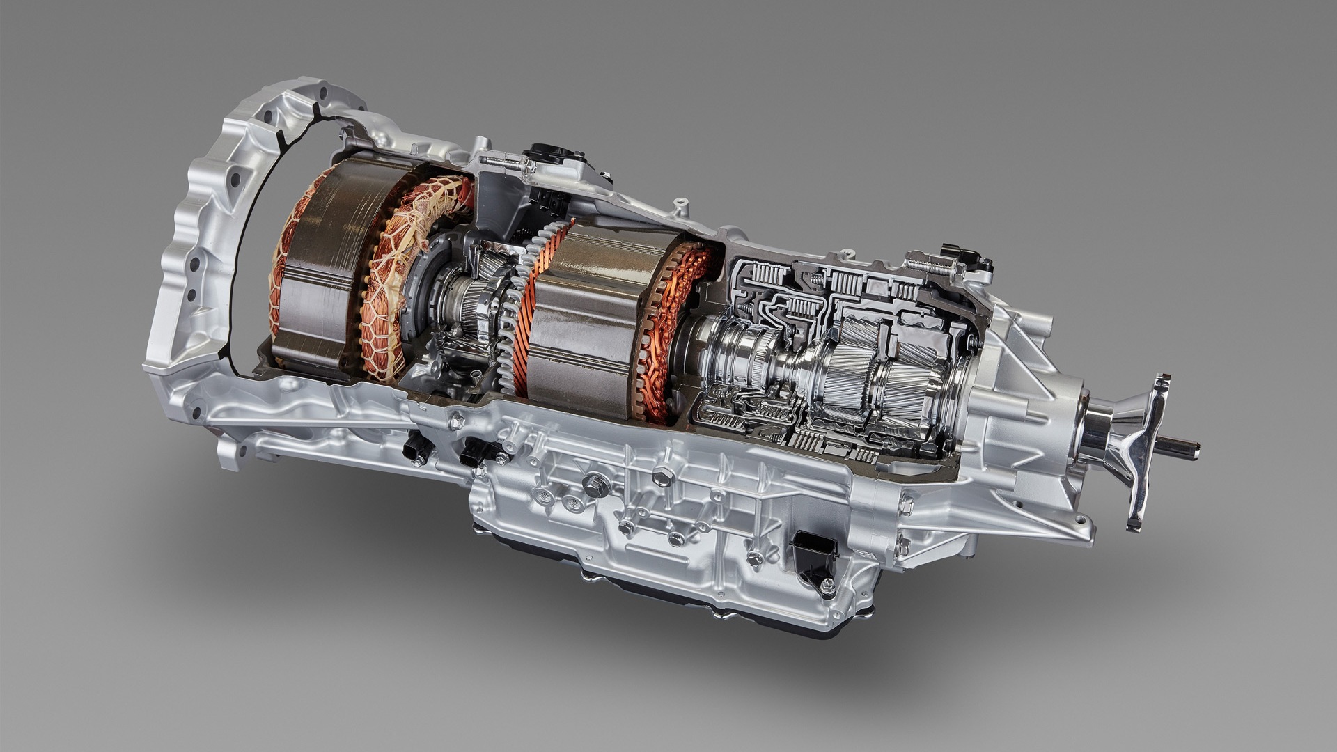 而当你真的希望手动降下档位,LC 方向盘背后巨大的换挡拨片就很值得。LC500h 标称的 10AT,其实是由双电机 E-CVT 加上一台 4AT 组合而成,即雷克萨斯所说的 Multi-Stage 多级混动系统。E-CVT 通过调节电机介入力度,模拟出三个档位,与 4AT 的前三档配合,3×3 得到 9 个档位,4AT 的最后一个档位单独作为节油超速档。