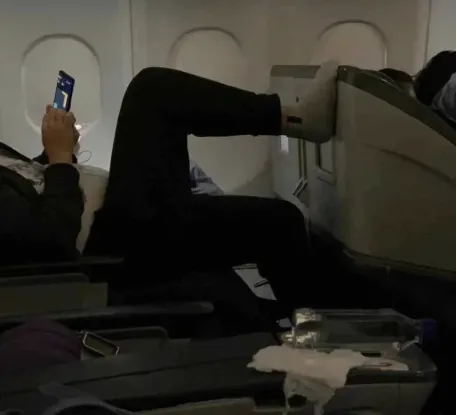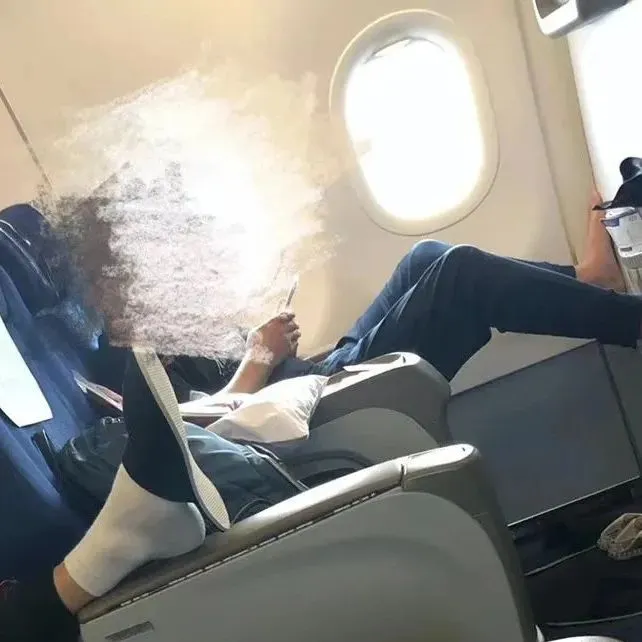 但最讨厌的是那种,坐没坐相,穿一身名牌也浑身的无赖样,不管自己的脚是不是很臭,不管自己脚皮有没有外露,就大摇大摆劈着腿踩在那,哪怕周围旅客瞪他,乘务员翻起白眼,他还要扯一下裤裆让自己踩得更丝滑——这种人真的很多。