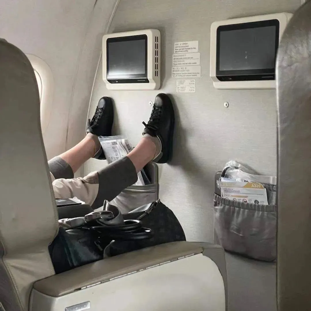 再比如一些旅客,长时间久坐腿酸,偶尔伸直踩一下,在乘务员路过时或旁人用余光扫过时赶忙放下,也看着让人舒服一点。