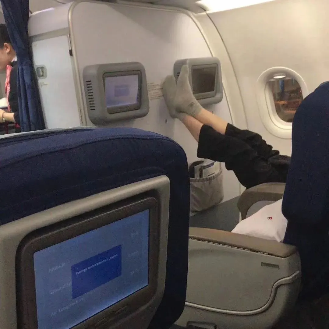但我也认真思考过,这不是腿长腿短的问题。对于那些旅客来说,无关在什么场景,只要条件适宜,他就喜欢把脚踩到前面某个区域,可能是医院的栅栏,可能是饭店的桌椅,可能是天桥的扶手,自然也包括我们飞机的壁板。